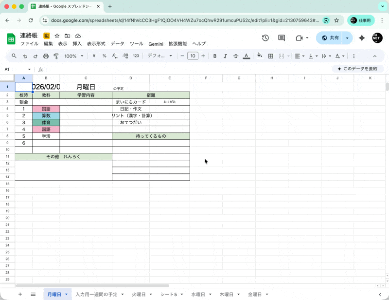 Google Spreadsheetから時間割データを自動取得。学校や家庭で共有されている時間割をそのまま利用できます。